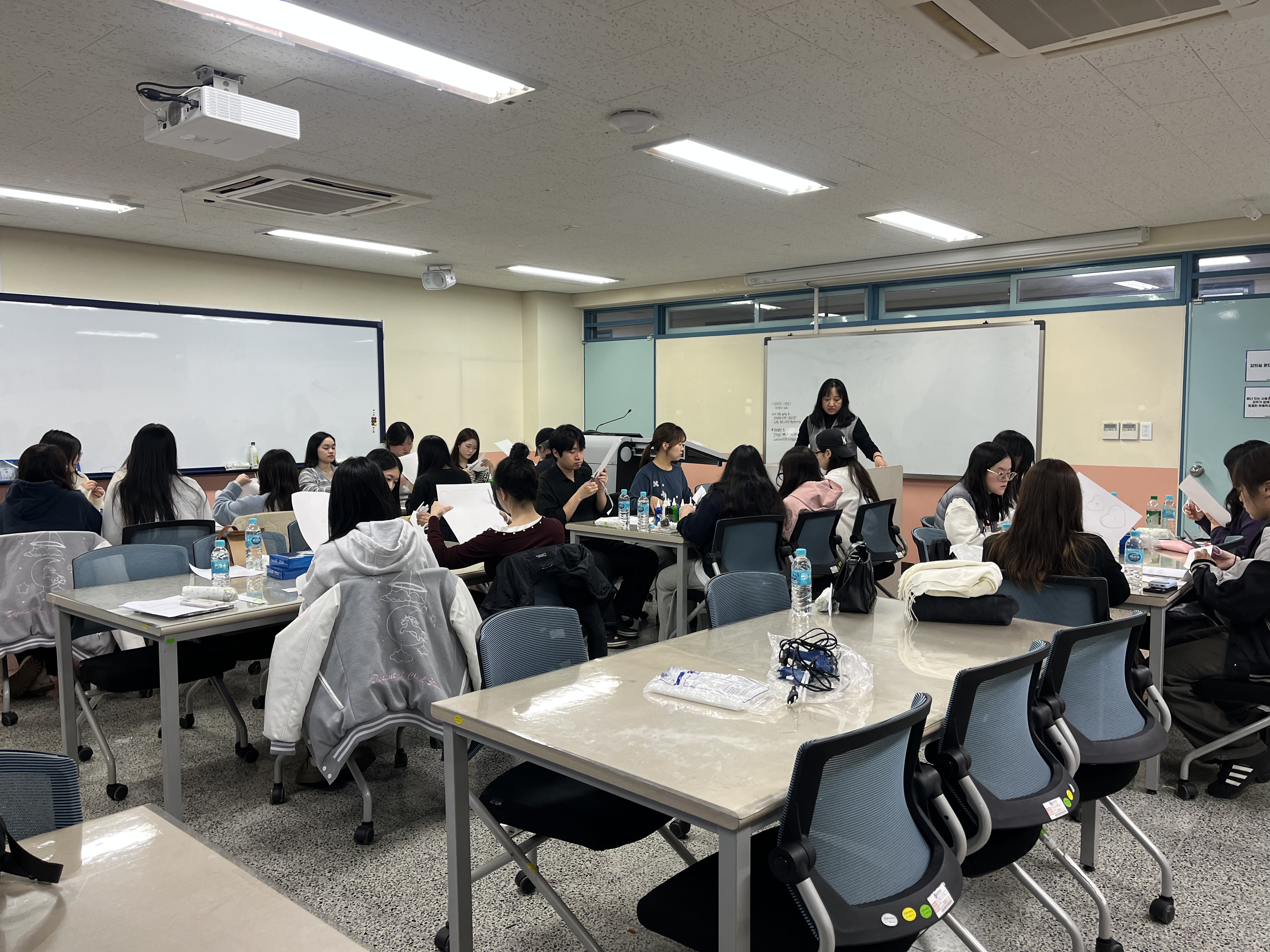 아동학과에서는 2025학년도 현장 실무 대비 공예 특강을 진행하였습니다. 이번 특강은 보육현장에서 필요한 공예 역량을 강화하고, 다양한 재료와 도구의 활용 능력을 기르기 위해 마련되었습니다. 특강은 총 2팀으로 나누어 진행되었으며, A팀은 펠트공예를 주제로 펠트의 사용법을 익히고 기본 바느질법과 도구, 부재료 사용법을 배우며 환경 게시판 꾸미기 활동을 진행하였습니다. B팀은 폼아트공예를 주제로 폼아트의 기본 이해와 재료의 성질을 익히고, 기본도구와 재료 사용법을 학습한 뒤 환경 게시판 꾸미기 활동을 체험하였습니다. 참여한 학생들은 직접 공예 활동을 경험하며 현장에서의 적용 방법과 교육적 활용 방안에 대해 생각해볼 수 있는 의미 있는 시간을 가졌습니다. 앞으로도 예비 보육교사들의 전문성 향상을 위한 다양한 실무 중심 특강이 지속적으로 마련될 예정입니다.