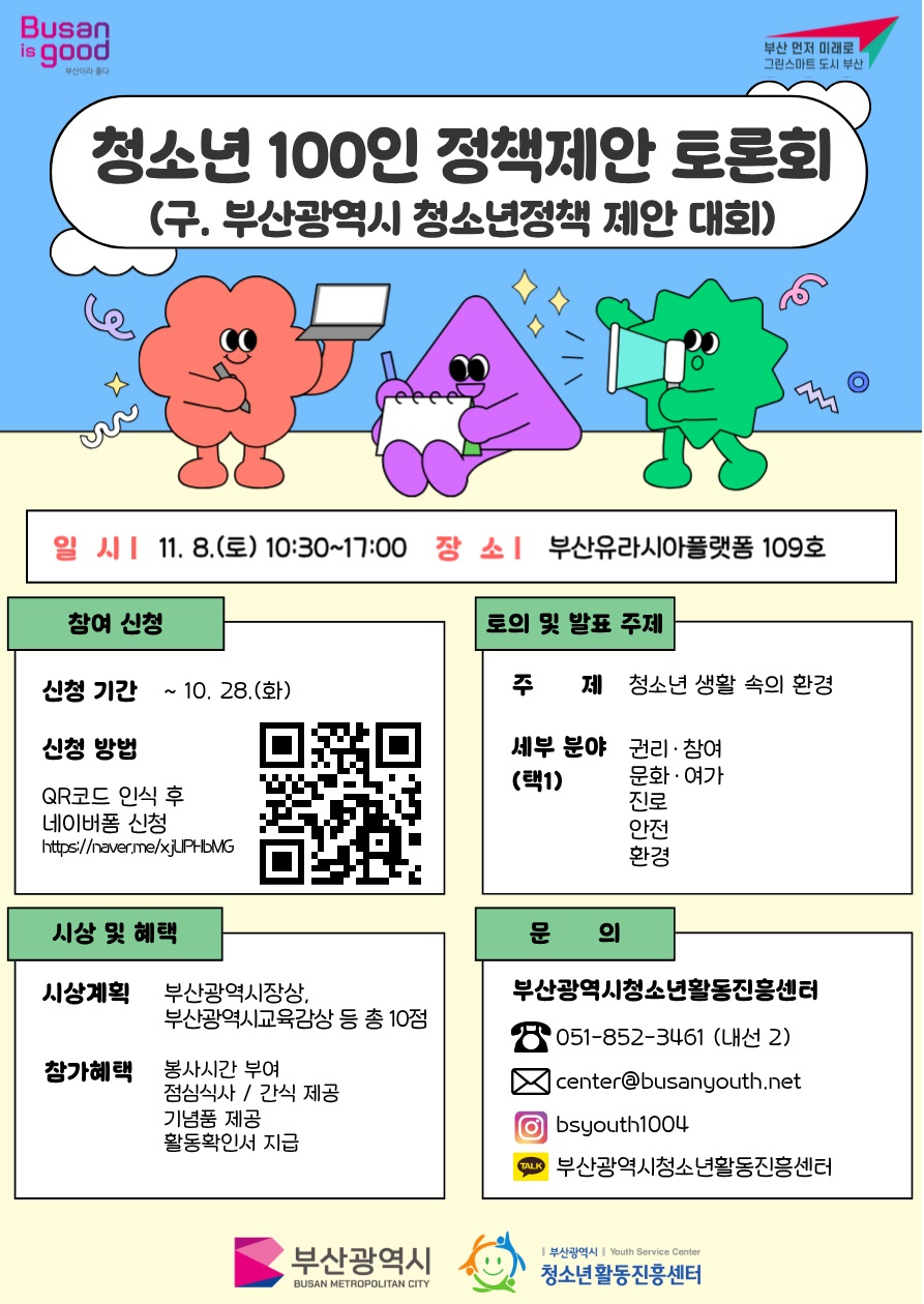 [안내]청소년 100인 정책제안 토론회(구. 부산광역시 청소년정책 제안 대회) 참가자 추가 모집 안내