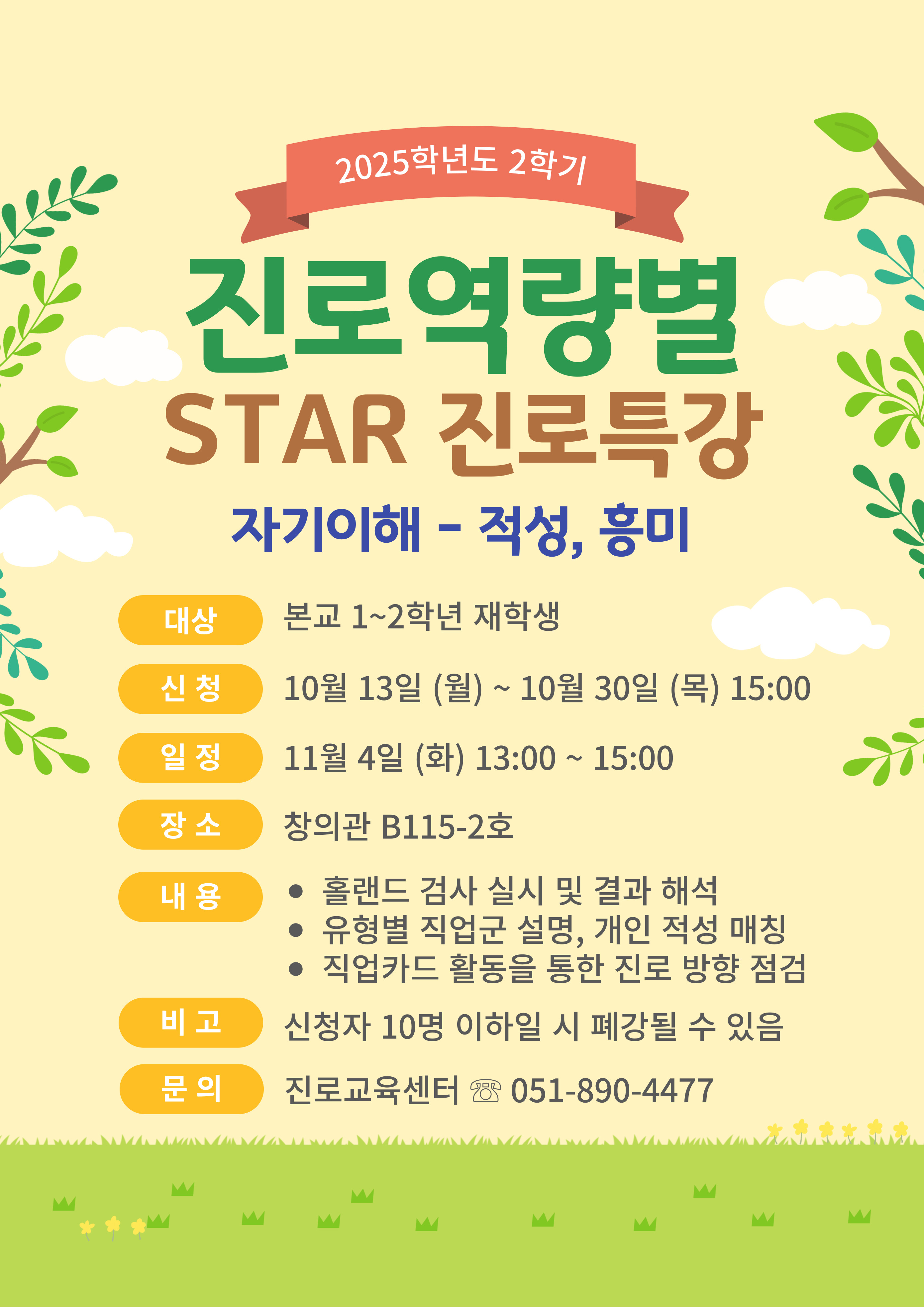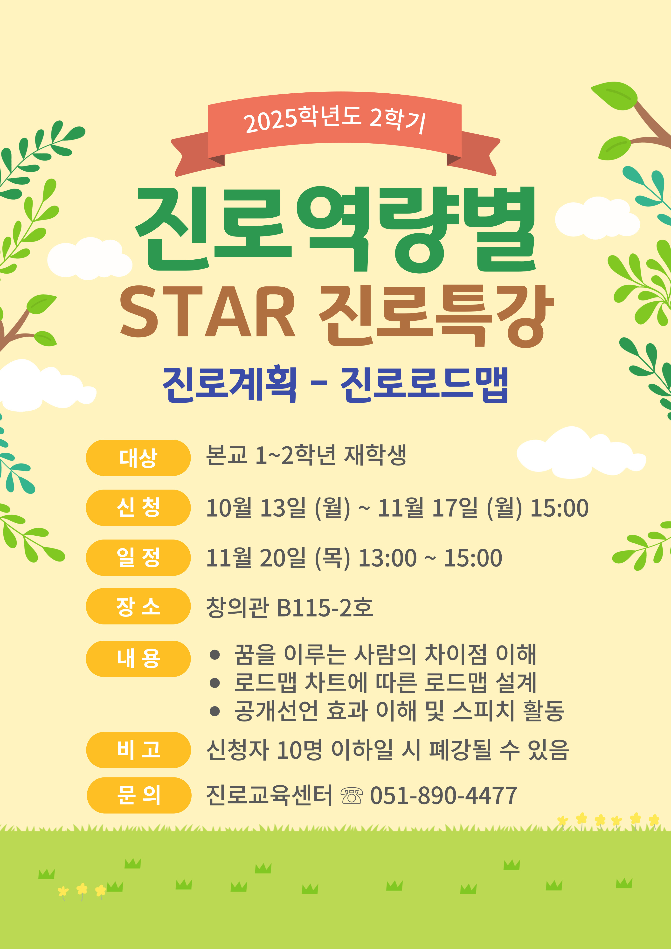 [재학생맞춤형고용서비스사업/국고-빌드업] 2025학년도 2학기 진로역량별 STAR 진로특강 운영 안내